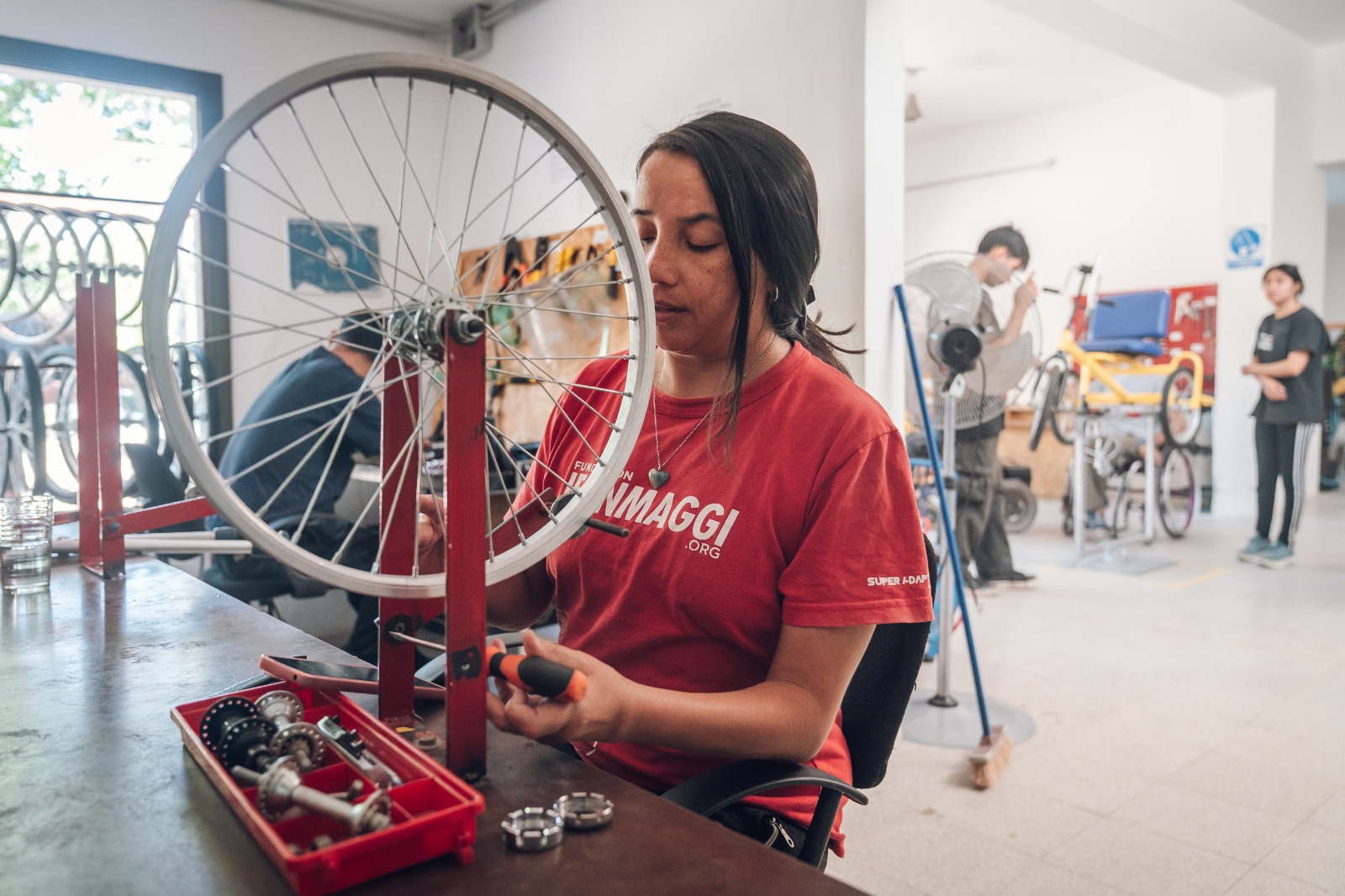 La fundación logró su expansión con la creación de un Polo Productivo en el año 2024. “A través de la fundación creamos una fábrica de bicicletas adaptadas integrada 100% por personas con discapacidad que se capacitan y encuentran un espacio de contención y aprendizaje continuo”, cuenta Jean.